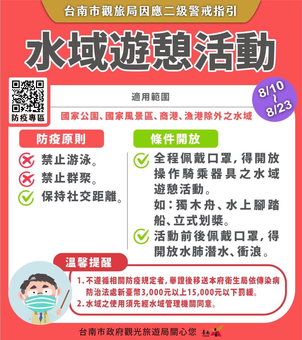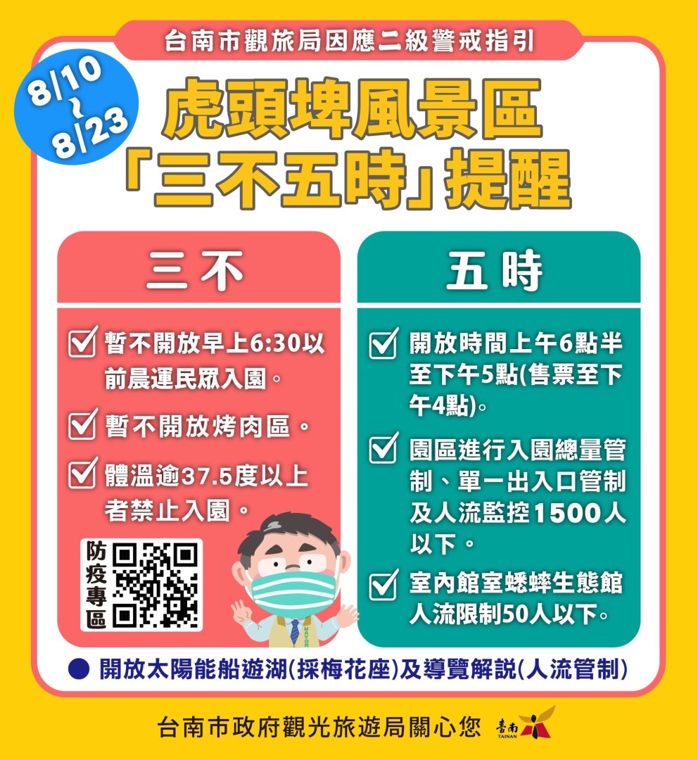 3.開放太陽能船遊湖(採梅花座20人以下)、烤肉區暫不提供服務;露營區開放20人以下需事先電話預約。