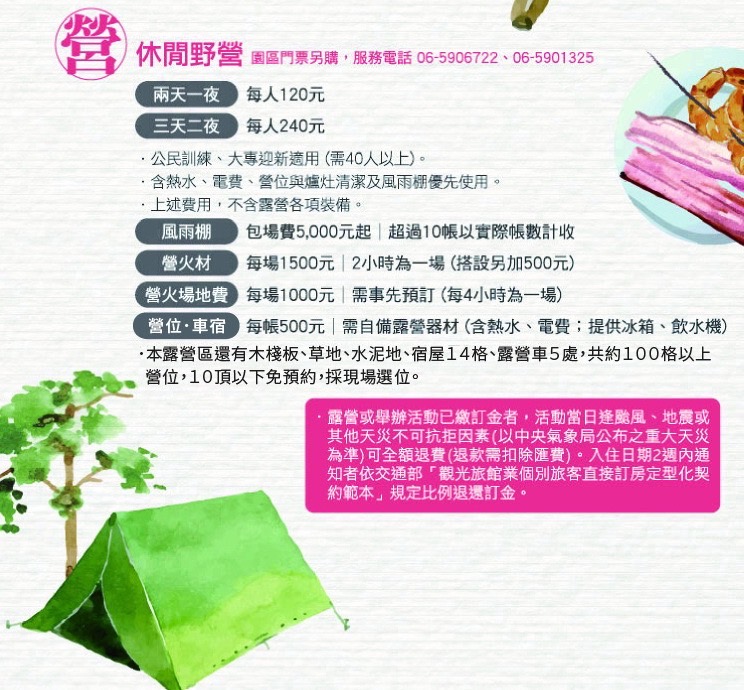 【露營須另購門票,重複進出園區請至售票處於手背蓋章識別】