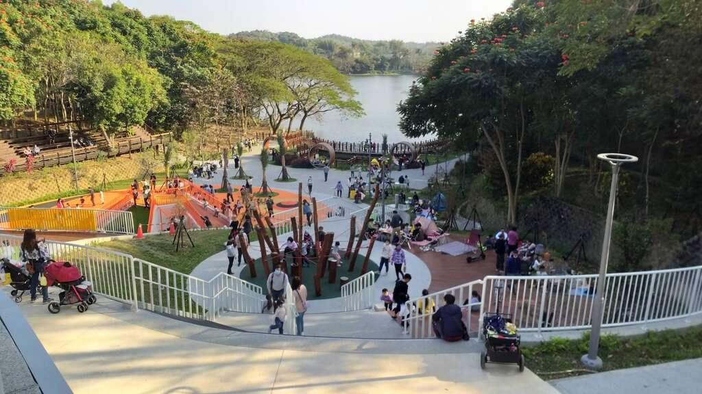 虎頭埤園區表示,新增的地景遊憩場成為最多親子共遊的地方,設施包括有:星月吊椅、綠丘滑草道、大地遊戲丘、圓形圈圈座椅以及不少小朋友喜愛的溜滑梯等,有不少遊客同時也在現場席地野餐,享受親子逍遙時光,園區特別提醒遊客,其中溜滑梯遊憩設施僅限6歲至12歲小朋友使用,請家長確實遵守遊憩場規則,共同維護遊憩安全。