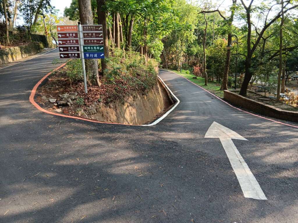 1.目前園區中路道路窄小,由竹林烤肉區環經吊橋三叉路、蟋蟀館、全齡式地景遊憩場,實施單行道管制,效果佳,擬予維持。(如圖示)
