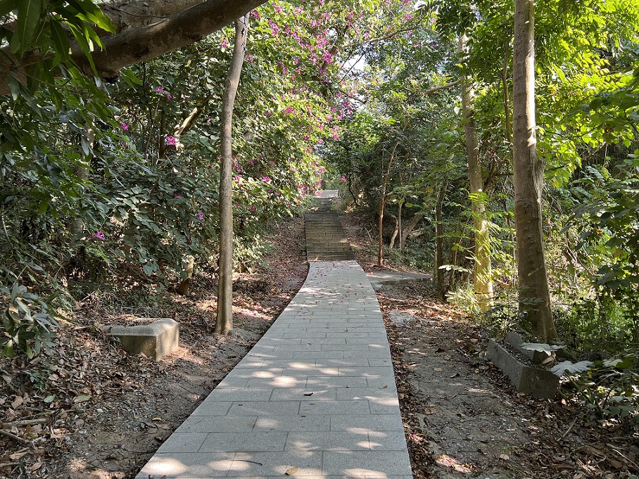 市長黃偉哲表示,芬多精步道全長約1500公尺,沿路都是好走的階梯,漫步在林蔭中舒適浪漫,景緻宜人,步道旁留有幾座神社石燈籠基座殘跡,兩側植物茂密,林相豐富,常見相思樹、樟樹、構樹、姑婆芋及竹林等植物,沿途呼吸新鮮空氣蜿蜒而上,可見到第一代神社所遺留之邊坡鵝卵石駁坎和階梯遺跡,再往前走,則可一探傳說中的古渠道遺構,沿途順著步道彷彿置身於半原始林中,可感受林中之幽靜及享受芬多精森林浴,是虎頭埤常客口中的山線步道。