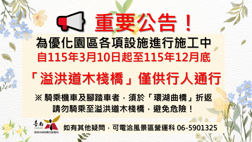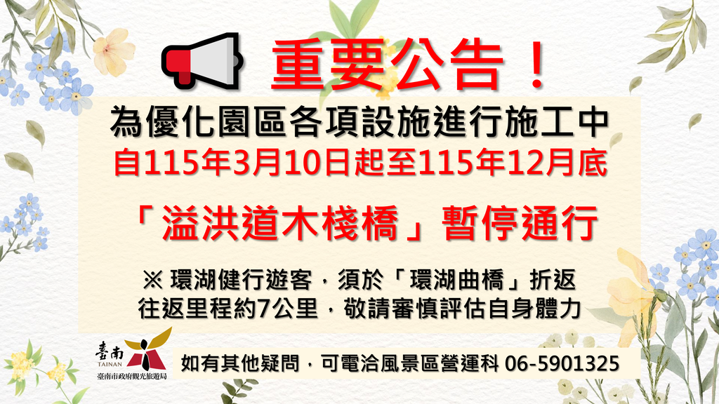 《必看公告》園區自115年3月10日起至115年12月底,部分設施及步道暫停使用。
